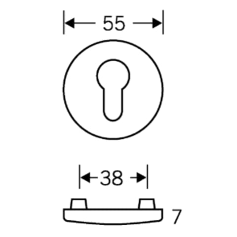 Schlüsselrosette aus Aluminium, verdeckt verschraubt, gewölbt, 55 mm Durchmesser. Mit fest/drehbarem Gleitlager.
