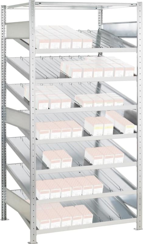 Schulte Schrägbodenregal B1000xT800xH2000 mm Grundregal und Feld 8 Böden,en vzk Fachlast 150kg
