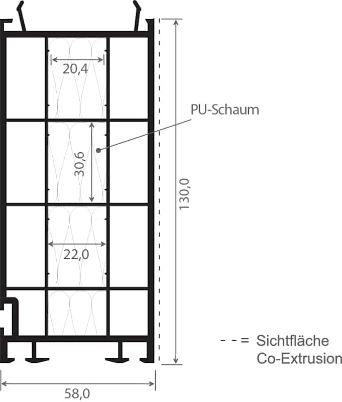 Schüco-Verbreiterung 130 mm Lg. 6,50 m Rb, für 70er/82er, VE: 13 m Innen Weiß, mittlere Kammer ausgeschäumt