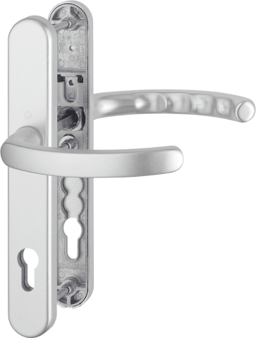 HOPPE Rohrrahmen Sicherheits-Drückergarnitur Luxembourg 1500/3358/3357N,Langschild,ES 1,ohne Zylinderabdeckung 92/8,DIN Links-Rechts,natur matt eloxiert,Türstärke67-72,gebogen/gebogen