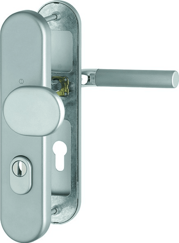HOPPE Vollblatt Sicherheits-Wechselgarnitur Bremen 86G/3332ZA/3310/1505,Langschild,ES 1,mit Zylinderabdeckung 72/8,DIN Links-Rechts,stahlfarbig matt eloxiert,Türstärke42-47,gekröpft/gerade fest