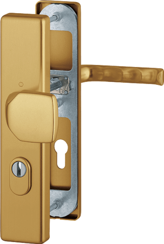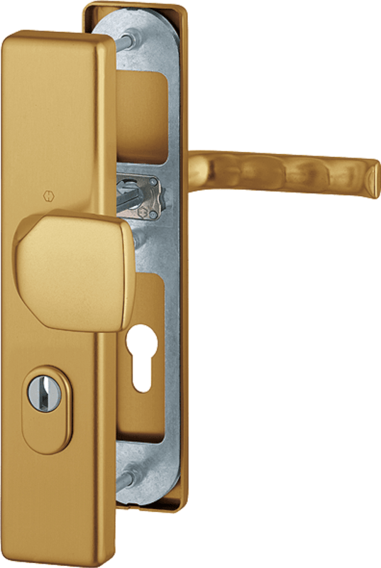 HOPPE Vollblatt Sicherheits-Wechselgarnitur London 61G/2222ZA/2210/113,Langschild,ES 1,mit Zylinderabdeckung 72/8,DIN Links-Rechts,bronzefarben eloxiert,Türstärke37-47,gekröpft/gekröpft fest