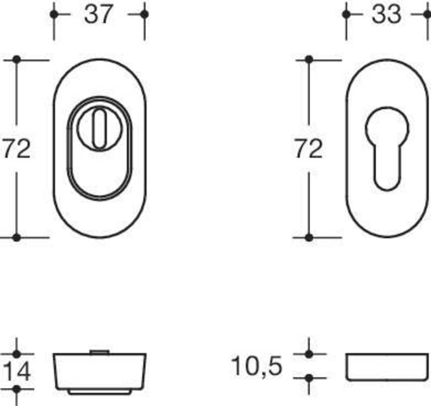 HEWI Schutzrosetten-Satz 316XPESZ DC; Produkttyp: Schutzrosetten-Satz; Produkttyp (Hersteller): Schutzrosette; Form: oval; Material: Edelstahl; Montageart: aufliegend; Befestigungsart: verdeckt versch