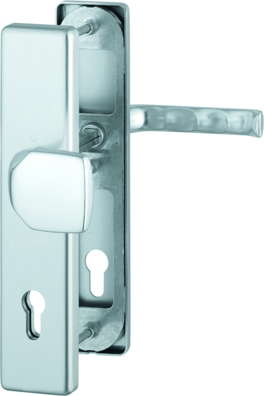 HOPPE® Schutz-Wechselgarnitur London 61G/2221/2210/113; Material: Aluminium; Befestigungsart: verdeckt verschraubt; Vierkant: 10 mm; Befestigungstechnik: mit Stütznocken; Abdeckung: Langschild; Lageru