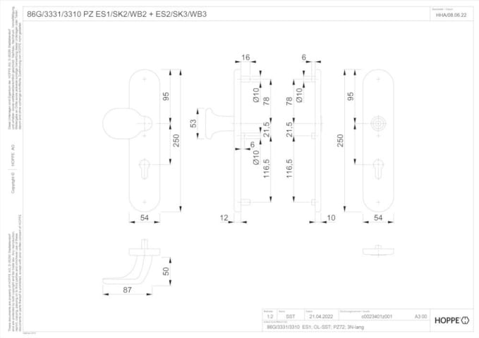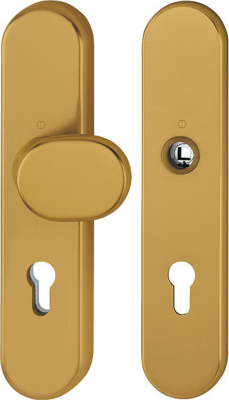 HOPPE Vollblatt Sicherheits-Wechselgarnitur 86G/3331/3310,Langschild,ES 1,Profilzylinder gelocht 72/8,DIN Links-Rechts,bronzefarben eloxiert,Türstärke37-47,gekröpft fest