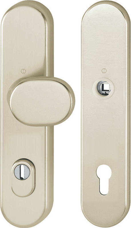 HOPPE Vollblatt Sicherheits-Wechselgarnitur 86G/3332ZA/3310,Langschild,ES 1,ohne Zylinderabdeckung 92/10/8,DIN Links-Rechts,neusilberfarben eloxiert,Türstärke67-77,gekröpft fest