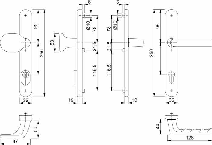 HOPPE Rohrrahmen Sicherheits-Wechselgarnitur Hamburg 86G/3359ZA/3357N/1700FA,Langschild,ES 1,mit Zylinderabdeckung 92/8,DIN Links-Rechts,naturfarben eloxiert,Türstärke72-82,gekröpft/L-Form fest