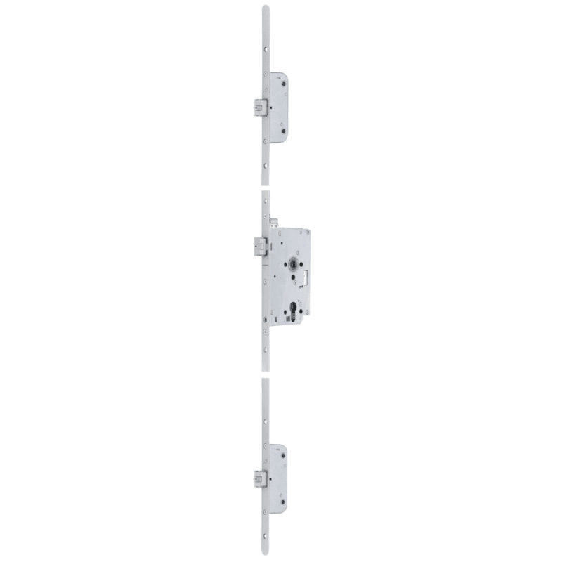 BKS Panik-Mehrfachverriegelung SECURY 2170EK; Produkttyp: Panik-Mehrfachverriegelung; Produkttyp (Hersteller): Panik-Mehrfachverriegelung; Ausführung: elektromechanisch; Verriegelung: automatisch; Entriegelung: über Schließzylinder oder Türgriff; Verriegelungsart (Zusatzverriegelung): Fallenriegel; Drückernuss: geteilte Nuss; Anzahl Verriegelungen: 3 St.; Tagesfallenfunktion: Nein; Stulpform: Flachstulp; Material Stulp: Edelstahl; Funktion Anti Panik: Schließzwangfunktion C; Schlossriegel: 1 tourig; Schlosskasten: geschlossen; Schlosskastenhöhe: 165 mm; Wechsel: ohne Wechsel; Material Zusatzriegel: Stahl; Norm: DIN EN 1125,DIN EN 1125,DIN EN 179,DIN EN 14846; Schlossklasse: Klasse 3; Zulassung: für Feuerschutz,für Rauchschutz,für Fluchttüren; Türart: Objekttür; Türflügelanzahl: einflügelig; Türwerkstoff: Holz,Stahl; Stromart: Arbeitsstrom; Dornmaß: 55 mm; Hinterdornmaß: 42 mm; Drückernussvierkant: 9 mm; Entfernung: 72 mm; Lochung: Profilzylinder gelocht; DIN-Richtung: DIN Links; Öffnungsrichtung: nach innen öffnend; Stulpausführung: kantig; Stulpbreite: 20 mm; Stulplänge: 2.285 mm; Stulpstärke: 3 mm; Farbton Stulp: edelstahl; Oberfläche Stulp: matt gebürstet; Ausführung Falle: Fallenriegel; Riegelausschluss: 20 mm; Riegelausschluss Nebenriegel: 20 mm; Einbautiefe Hauptschlosskasten: 94 mm; Zusatzinformation: Außendrücker stromlos entkoppelt; Spannungsart: DC