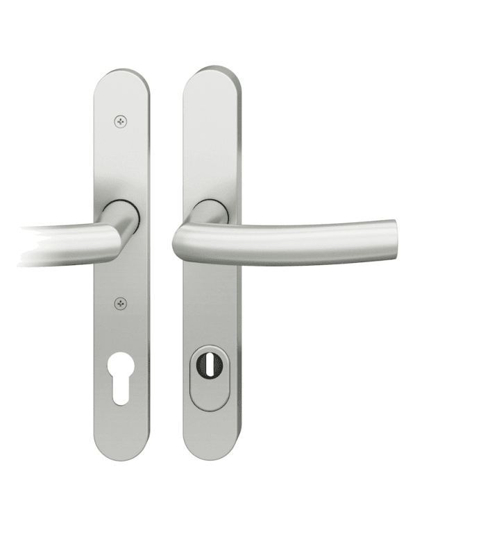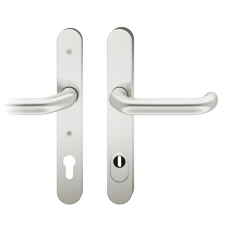 FSB, Feuerhemmend-Schutz-Drückergarnitur, Abdeckung: Langschild, Modellnummer: 73 7531, Lochung: Profilzylinder gelocht, Entfernung: 92mm, Vierkant: 9mm, Material: Aluminium, Farbton: naturfarbig, Oberfläche: eloxiert, DIN-Richtung: DIN Links-Rechts, Lagerung: Ausgleichslager®, Ausführung: mit Zylinderabdeckung, Befestigungsart: verdeckt verschraubt, Befestigungstechnik: mit Stütznocken, Befestigungssystem: Stiftverbindung, Schildbreite außen: 35mm, Schildbreite innen: 35mm, Schildlänge außen: 245mm, Schildlänge innen: 245mm, Anschlagrichtung: Drücker rechts/links verwendbar, Drückerbefestigung: RT-Vierkantstift, Form: oval, Schildstärke außen: 14mm, Schildstärke innen: 7mm, Türstärke min.: 56mm, Türstärke max.: 60mm, Türart: Abschlusstüren, Rahmentüren,Türwerkstoff : Aluminium, Kunststoff, Benutzerklasse: Klasse 4, Widerstandsklasse: ES 1, Norm: DIN EN 1906, DIN 18257, DIN 18273, Zulassung: für Feuerschutz, für Rauchschutz