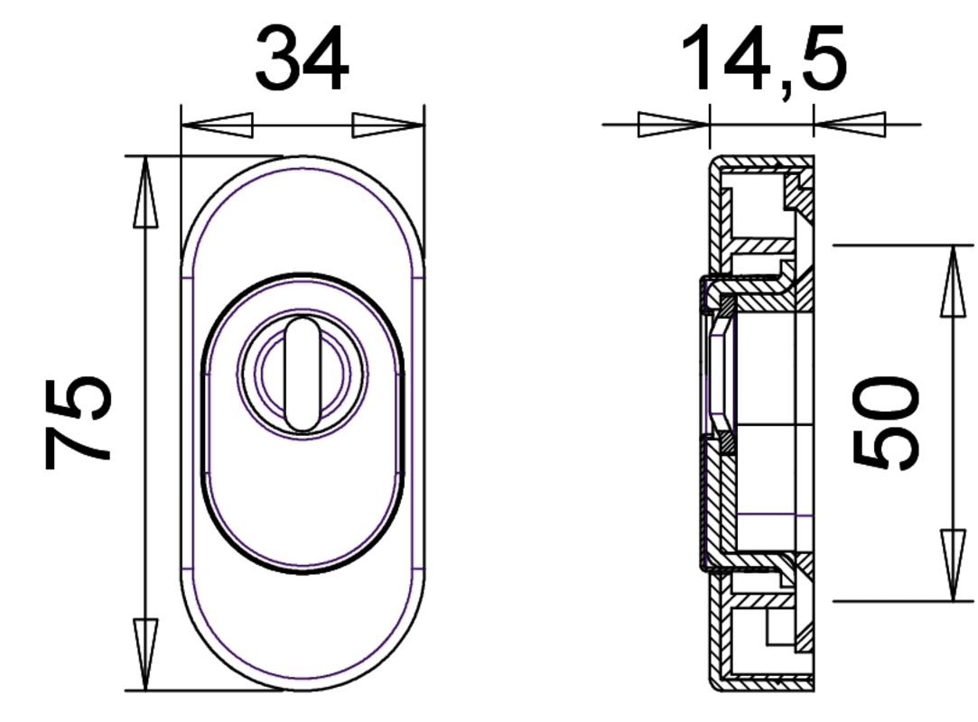 EDI, Profiltür-Schutz-Schiebe-Schlüsselrosette, Lochung: Profilzylinder gelocht, Stärke Abdeckung außen: 14,5 mm, Modell: Ares, Modellnummer: 8150, Demontagesicherung durch Bajonettverzahnung, Material: Aluminium, Farbton: silberfarbig, Oberfläche: eloxiert, Befestigungsart: verdeckt verschraubt, Befestigungstechnik: ohne Stütznocken, Befestigungsabstand: 50 mm, Ausführung: mit Zylinderabdeckung, Für Zylinderüberstand min.: 11 mm, Für Zylinderüberstand max.: 14 mm, Form: oval, DIN-Richtung: DIN Links-Rechts, Breite: 34 mm, Länge: 74,5 mm, Türart: Rahmentüren, Türwerkstoff: Aluminium, Kunststoff