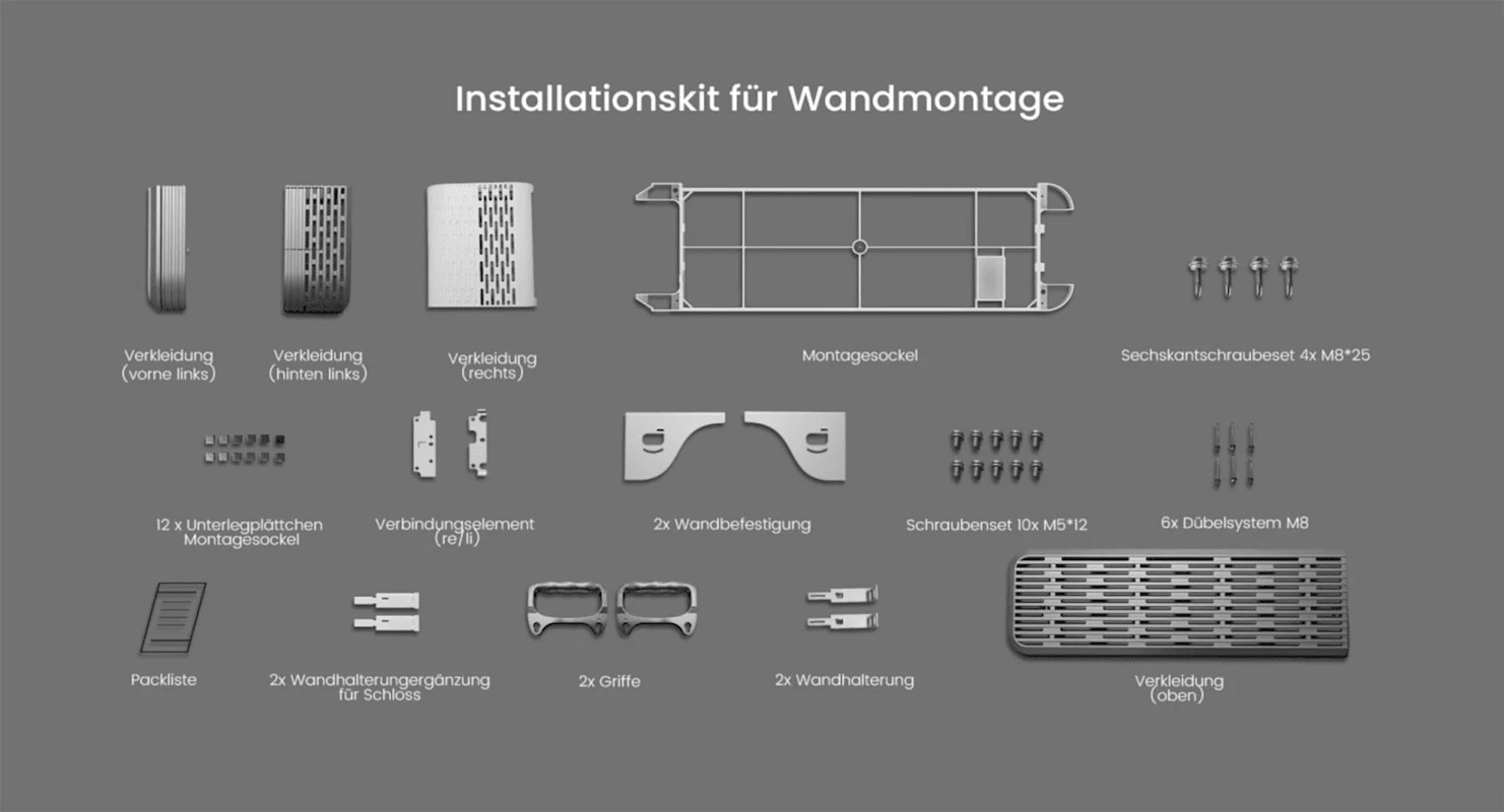 Durch die robuste Konstruktion unterstützt das Installationskit eine zuverlässige Befestigung der Systemkomponenten und erleichtert die Installation in Technikräumen, Gewerbegebäuden oder Energiezentralen.