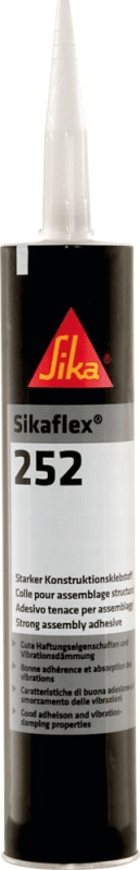 SikaflexH®#-252• 1K-Polyurethan • Härtet mit Luftfeuchtigkeit zu einem Elastomer aus • Elastisch • Überlackierbar • Toleranzausgleichend • Dynamisch hochbelastbar • Vibrationshemmend • Nicht ko