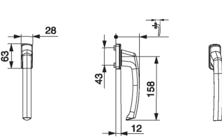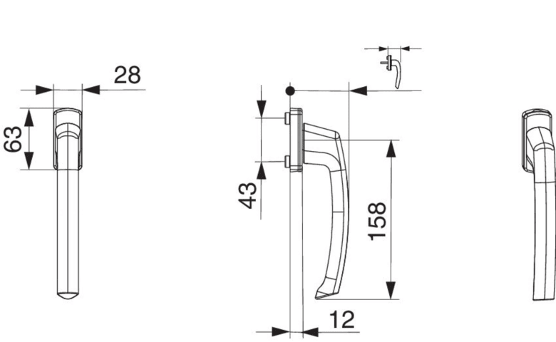 SKB Griff Harmony Innengriff mit 90° Raste mit Nocken 10/12 ohne Stift champagne F2