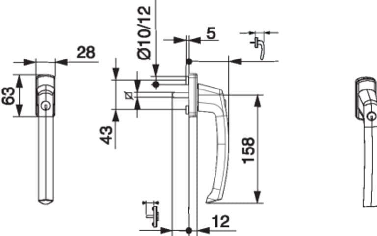 SKB Griff Harmony Innengriff mit 90° Raste Sperrzylinder mit Nocken 10/12 Stift 7x32 champagne F2