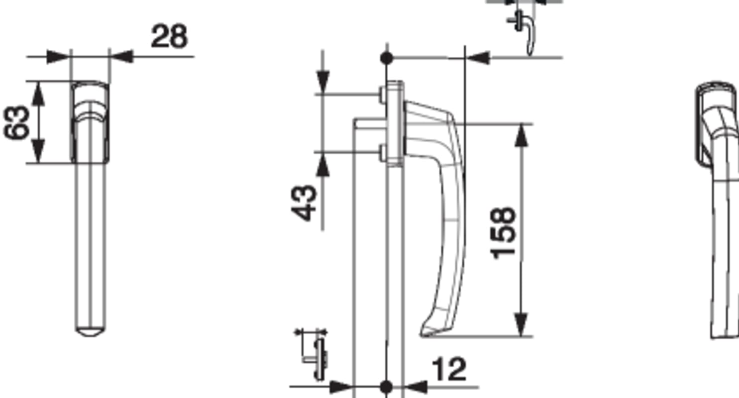 SKB Griff Harmony Innengriff mit 90° Raste mit Nocken 10/12 Stift 7x32 verkehrsweiss RAL 9016 seidenglanz