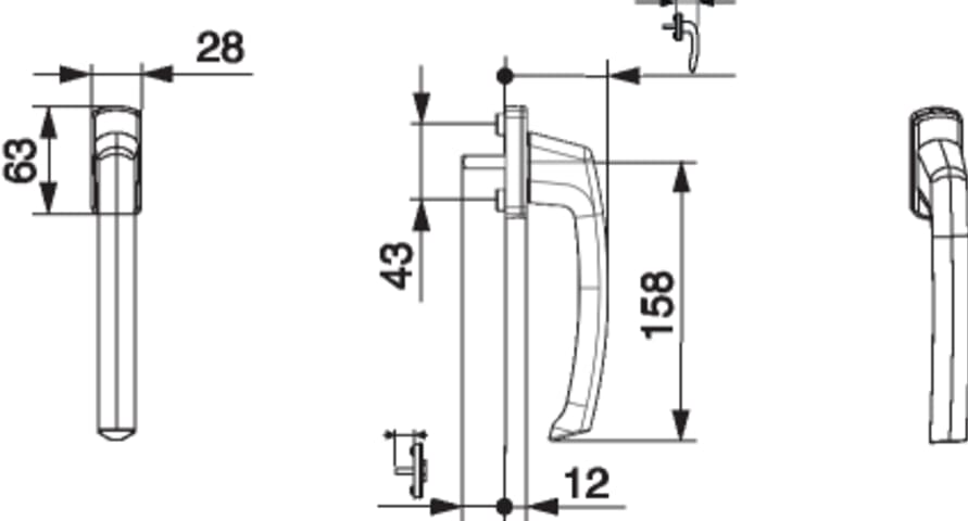 SKB Griff Harmony Innengriff mit 90° Raste mit Nocken 10/12 Stift 7x38 silber F1