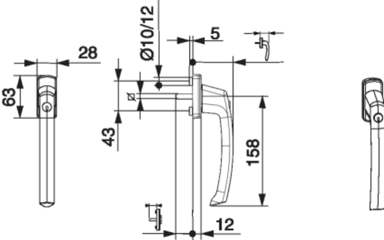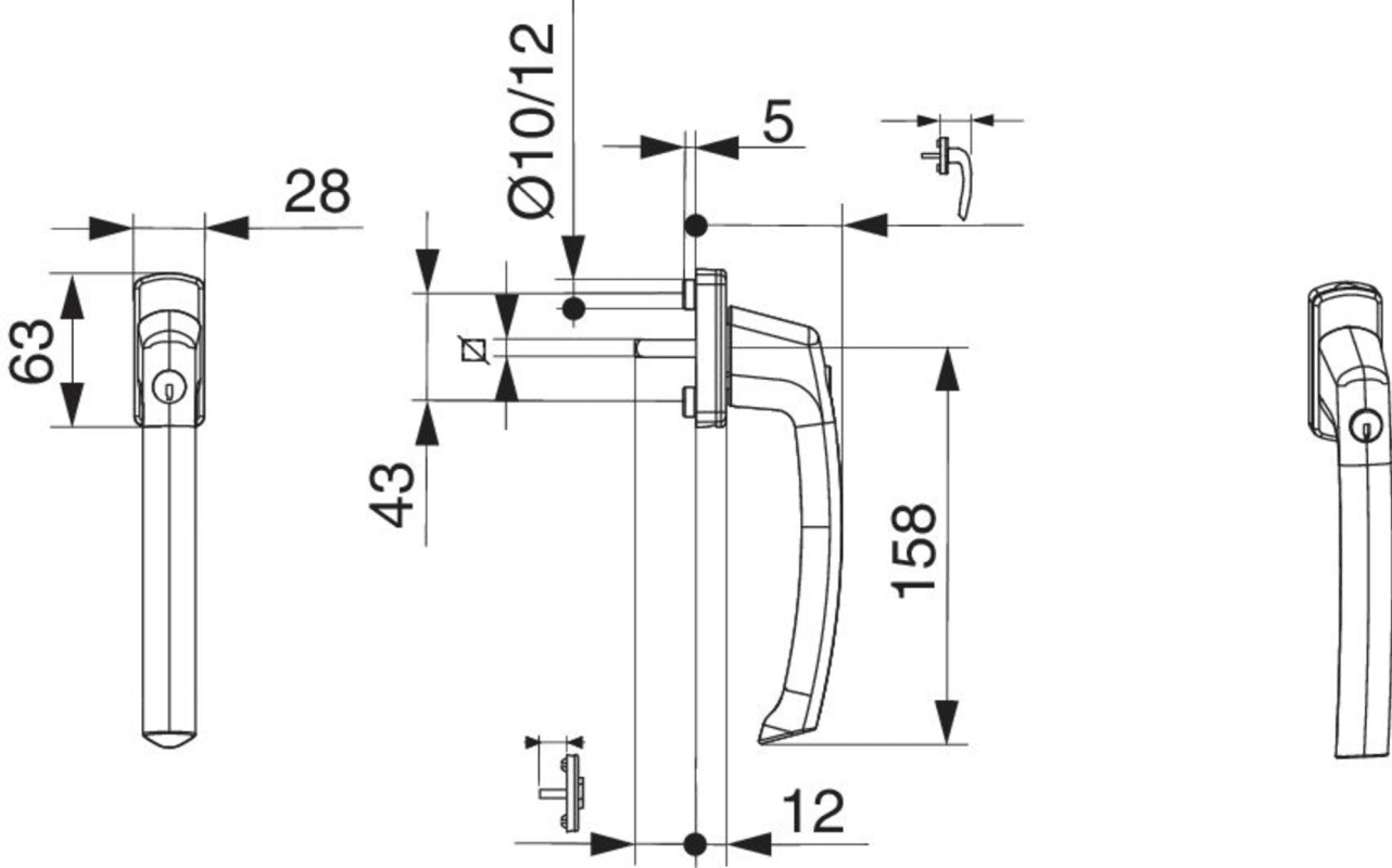 SKB Griff Harmony Innengriff mit 90° Raste Sperrzylinder mit Nocken 10/12 Stift 7x35 schwarzbraun F5