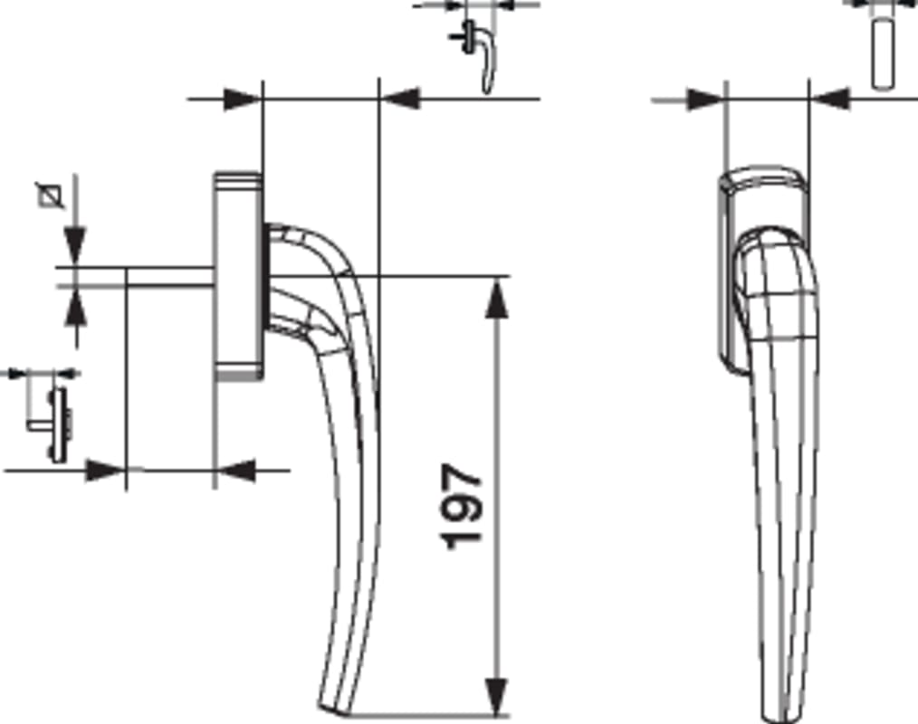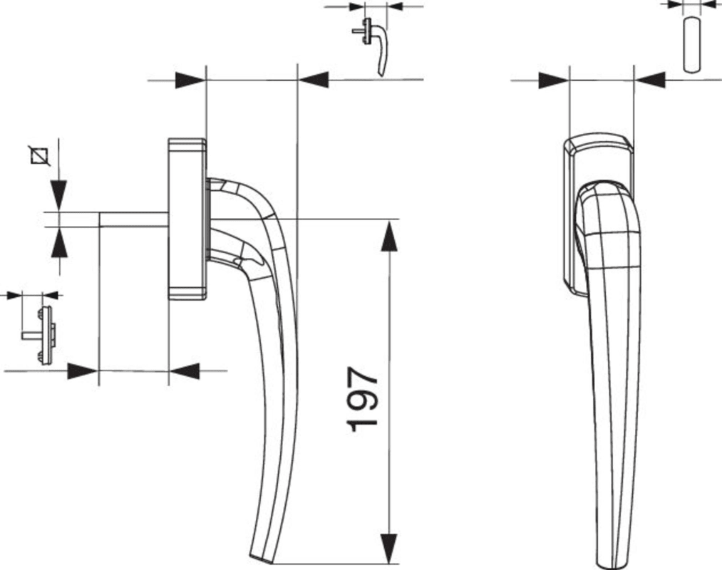SKB-Z Griff Standard Innengriff mit 90° Raste mit Nocken 12 Stift 8x45 mit Schrauben M5x55 mittelbronze C33 mit Aufdruck Maco - Logo