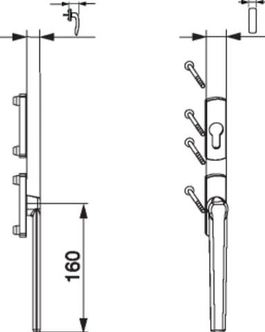 SKB-Z Griff-u.Rosettengarnitur Außengriff flach PZ mit Nocken 12 mit Schrauben M5x100 Stift VK8 Profilstärke 90 mm titan F7