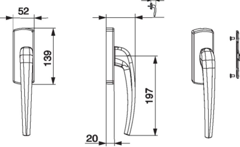 SKB-Z Griff mit Aufsatzgetrieb Standard Innengriff mit 45° Raste mit Nocken 4 mit Schrauben 4,8x45 mittelbronze C33 links mit Aufdruck Maco - Logo