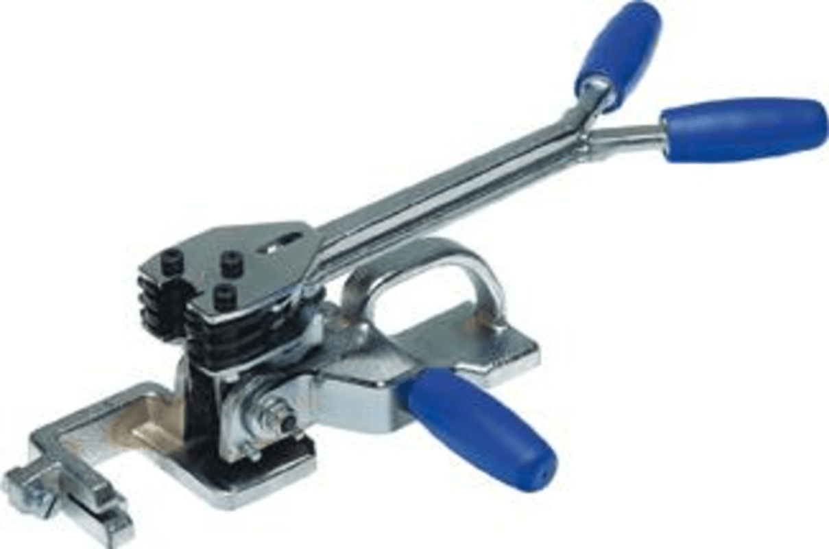 Stahlband-Umreifungsgerät • Hülsenverschluss: 6 Einschnitte im Stahlsiegel garantieren zuverlässige Verschlussfestigkeit • Spannung: mittels Transport-Rad • Bandtyp Stahlband: Normal-Qualität Hinwei