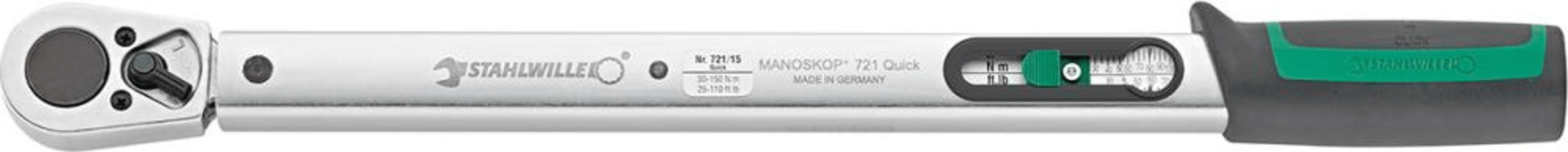 Drehmomentschlüssel MANOSKOP® 721 Quick• Drehmoment einstellbar • Mit fest eingebauter Knarre • Lesbar über Fensterskala • Drehmomenteinstellung über Griffende • Schnellverstellung ohne Werkzeug