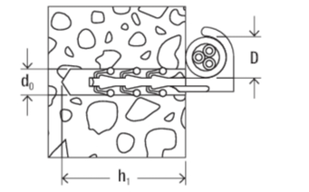 Die fischer Steckfix plus Einzelschelle SF plus ES ist eine montagefreundliche Lösung zur Befestigung von Leitungen und Rohren. Die aus hochwertigem Nylon hergestellte Einzelschelle vereint Dübel, Schraube und Schelle in einem Bauteil. Die innovative Elektrobefestigung wird ohne Schraube in das Bohrloch gesteckt und fixiert die Rohre und Leitungen direkt in Beton und Vollstein. Die Steckfix plus Einzelschelle hält auch bei extremen Temperaturbelastungen von -20 °C bis +80 °C.