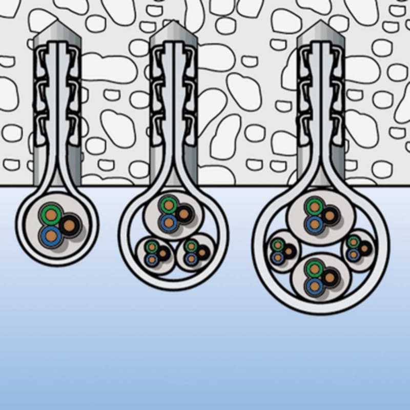 Die fischer Steckfix plus Leitungsschlaufe SF plus ist eine montagefreundliche und wirtschaftliche Lösung zur Befestigung von leichten Kabeln und Rohren verschiedener Durchmesser. Die aus hochwertigem Nylon hergestellte Leitungsschlaufe vereint Dübel, Schraube und Schlaufe in einem Bauteil. Die innovative Elektrobefestigung wird ohne Schraube in das Bohrloch gesteckt und fixiert die Rohre und Leitungen direkt in Beton und Vollstein. Die Steckfix plus Leitungsschlaufe SF plus hält auch bei extremen Temperaturbelastungen von -20 °C bis +80 °C.