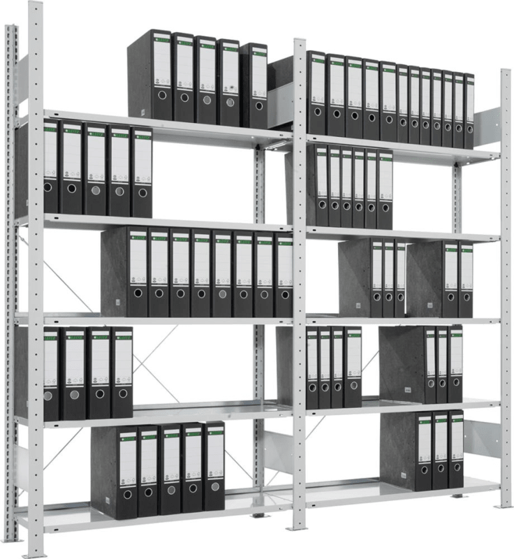 META Steckregal Meta-COMPACT B750xT300xH2500 mm Anbaufeld 7 Böden vzk 63 Ordner je Regalfeld