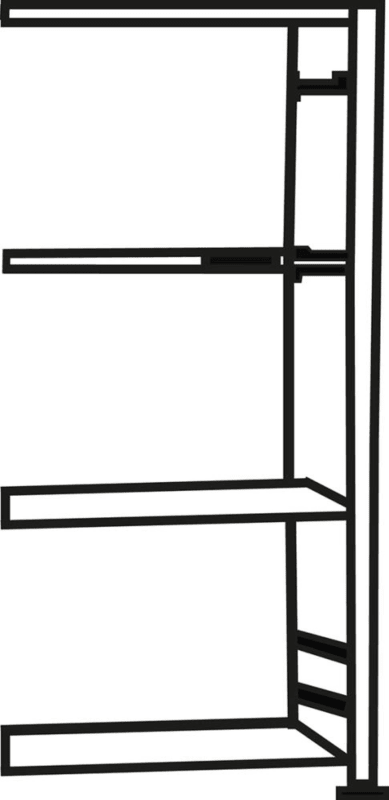 Doppel-Steckregal, verzinkt, Tragkraft 250 kg • Oberfläche: sendzimirverzinkt • Raster Höhenverstellung: 25 mm • Aussteifung: Kreuzstrebe • Systemlochung: vorhanden (50-mm-Raster) • Zweiseitig nutzbar Hinweis: Regale baulich fest miteinander verbunden. Planungshinweis: Grundregal: Nennlänge + 60 mm Anbauregal: Nennlänge + 6 mm Rahmentiefe gesamt: Nenntiefe + 2 x 36 mm