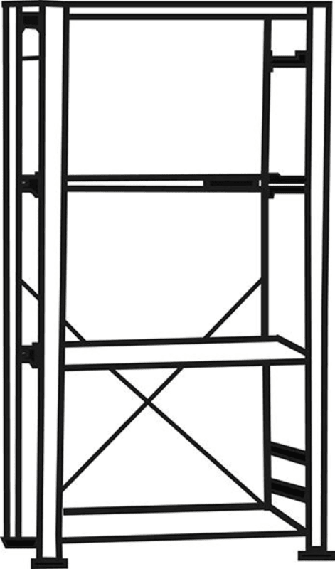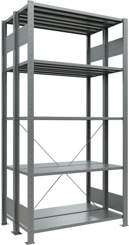 Doppel-Steckregal, verzinkt, Tragkraft 150 kg • Oberfläche: sendzimirverzinkt • Raster Höhenverstellung: 25 mm • Aussteifung: Kreuzstrebe • Systemlochung: vorhanden (50-mm-Raster) • Zweiseitig nutzbar Hinweis: Regale baulich fest miteinander verbunden. Planungshinweis: Grundregal: Nennlänge + 60 mm Anbauregal: Nennlänge + 6 mm Rahmentiefe gesamt: Nenntiefe + 2 x 36 mm