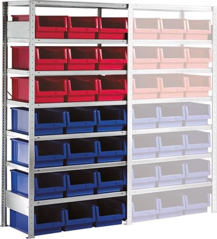META Steckregal Meta-CLIP B1000xT500xH2000 mm Grundfeld 7 Böden vzk Fachlast 100kg 21 Kästen