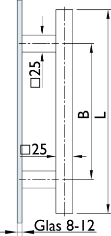 Stoßgriff Serie 8031 / 25 x 25 mm Vierkantrohr, Länge 1200 mm, Achsmaß 900 mm, mit 2 geraden Stützen, inkl. einseitiger Befestigung, Oberfl. 74 (Classic Black, ähnl. RAL 9005)