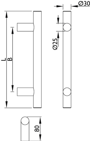 Stoßgriff Serie 8000 Ø 30 mm, Länge 1500 mm, Achsmaß 1300 mm, 2 gerade Stützen, inkl. einseitiger Befestigung, Oberfl. 60 (Edelstahl matt)