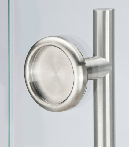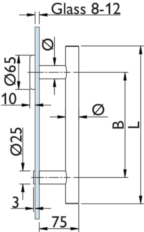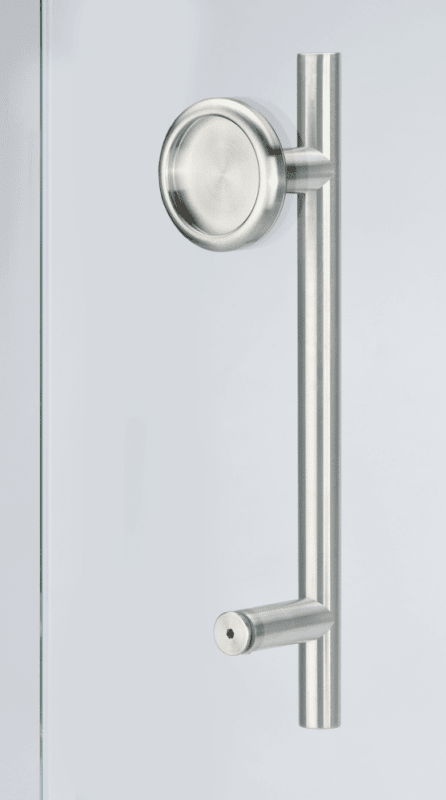 Stoßgriff-/Schiebetürmuschel-Set, einseitige Schiebetürmuschel plan aufliegend, mit Stoßgriff 8500 Ø25/300/200 und 1 x Bef. 1.3, Oberfl. 60 (Edelstahl matt)