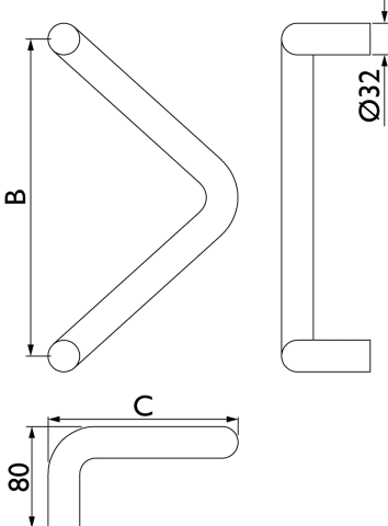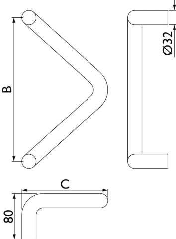 Stoßgriff Serie 8042 Winkel, Durchmesser 32 mm / Achsmaß 350, Ausladung 190 mm, inkl. einseitiger Befestigung, Oberfl. 60 (Edelstahl matt)