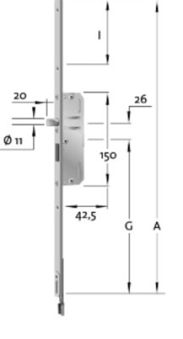 ANSCHLUSSSTULP SCHLUESSELBETAETIGT MIT RUNDBOLZEN, KASTENHOEHE 150 MM, MIT STANDARDVERZAHNUNG, 20 X 3 X 500 MM, KANTIG, MASS UNTERKANTE STULP BIS MITTE ZUSATZKASTEN = 274 MM, HELL VERZINKT