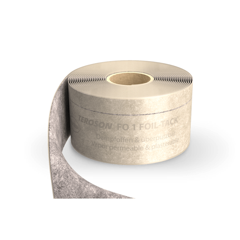 TEROSON FO 1 FOIL-TACK ist eine vollflächig selbstklebende, wasserdampfoffene und überputzbare Dichtfolie mit Henkel Hotmelt Technologie. TEROSON FO 1 FOIL-TACK ist für die Abdichtung von Fenster-, Fassaden- und Türelementen im Außenbereich (kalte Bauteilseite) geeignet. Sie ist auch als Untergrund für Wärmedämm-Verbundsysteme (WDVS) geprüft und bestätigt. Viele bauüblichen Dämmplattenkleber haften auf TEROSON FO 1 FOIL-TACK. Die wasserdampfoffene Folie ermöglicht das Verdunsten von eingeschlossener Baufeuchtigkeit. Somit werden Kondensatschäden bei der späteren Bauteilnutzung vermieden.
