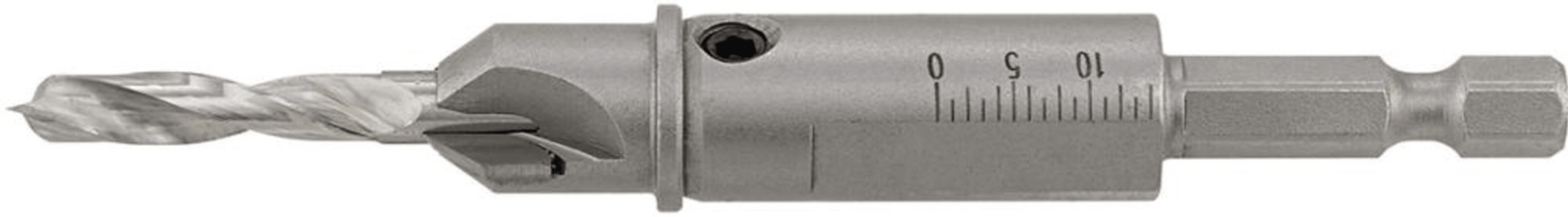 • Bohrer besteht aus einer austauschbaren Bohrer-Senker-Kombinatio