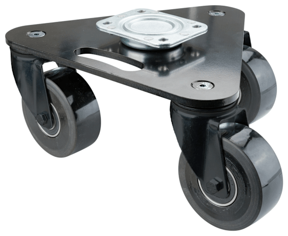 Theaterroller TR300.B93.100.P1, Produkttyp: Trapezroller, Material/Art des Radkörpers: Aluminium, Material der Lauffläche: Polyurethan 90 +/- 3 Shore A, Lager: Kugellager, Ø Rad: 100 mm, Tragkraft: 900 kg