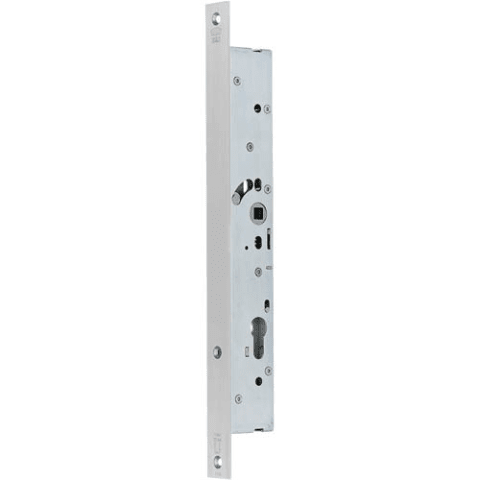 BKS Treibriegelschloss B 1794; Produkttyp: Treibriegelschloss; Produkttyp (Hersteller): Treibriegelschloss; Verriegelung: selbstverriegelnd (automatisch); Entriegelung: manuell; Stulpform: Flachstulp; Material Stulp: Edelstahl; Einsatzbereich: Standflügel; Schlosskastenhöhe: 310 mm; Norm: DIN 18250,DIN EN 179; Zulassung: für Fluchttüren,für Feuerschutz,für Rauchschutz; Türart: Rohrrahmen; Türflügelanzahl: zweiflügelig; Türwerkstoff: Aluminium,Kunststoff; Hub Obenverriegelung: 20 mm; Hub Untenverriegelung: 20 mm; Dornmaß: 35 mm; Drückernussvierkant: 9 mm; Entfernung: 92 mm; Lochung: Profilzylinder gelocht; DIN-Richtung: DIN Links-Rechts; Stulpausführung: kantig; Stulpbreite: 24 mm; Stulplänge: 380 mm; Stulpstärke: 3 mm; Farbton Stulp: edelstahl; Oberfläche Stulp: matt; Einbautiefe Schlosskasten: 47,5 mm; Zusatzinformation: Treibriegelstangen über den Schlüssel verriegel- und entriegelbar, jedoch nicht feststellbar