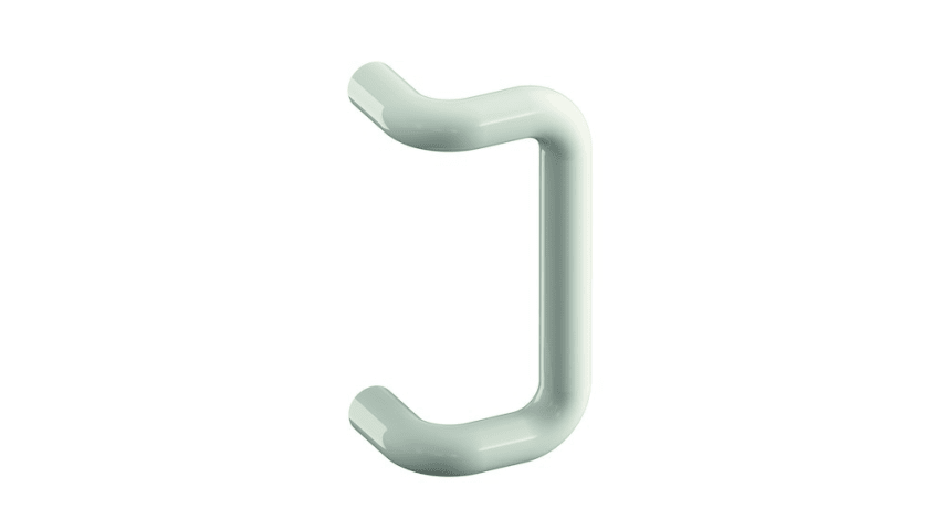 • Winkelgriff in gebogener Form ausgeführt, mit gerader Anbindung, zur Montage vorgerichtet für Blatt-Türen, in Verbindung mit BA5.0 für Rahmentüren