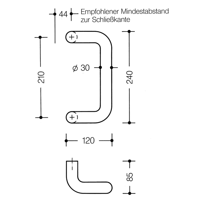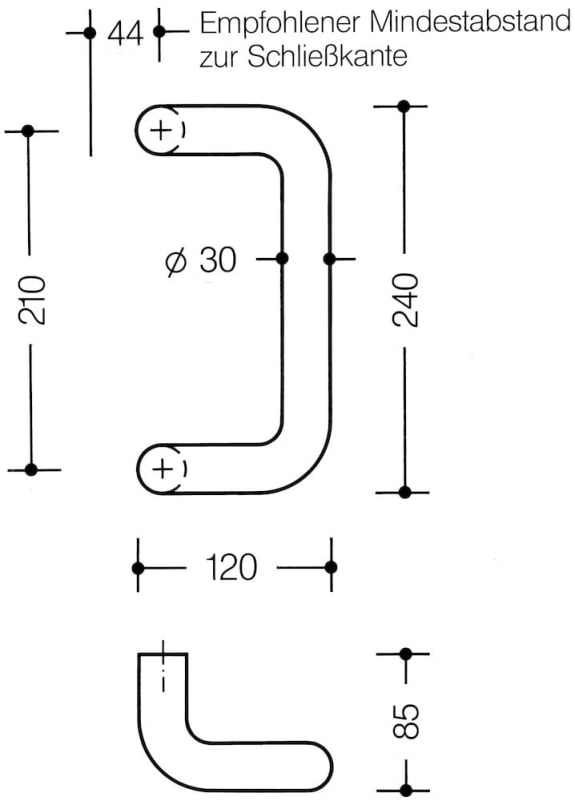 • erfüllt der Griff die Richtlinien des Bundesverbandes der Unfallkassen e. V. (BUK) - Sicherheitsabstand zur Schließkante 25 mm.