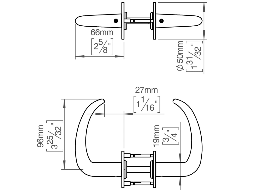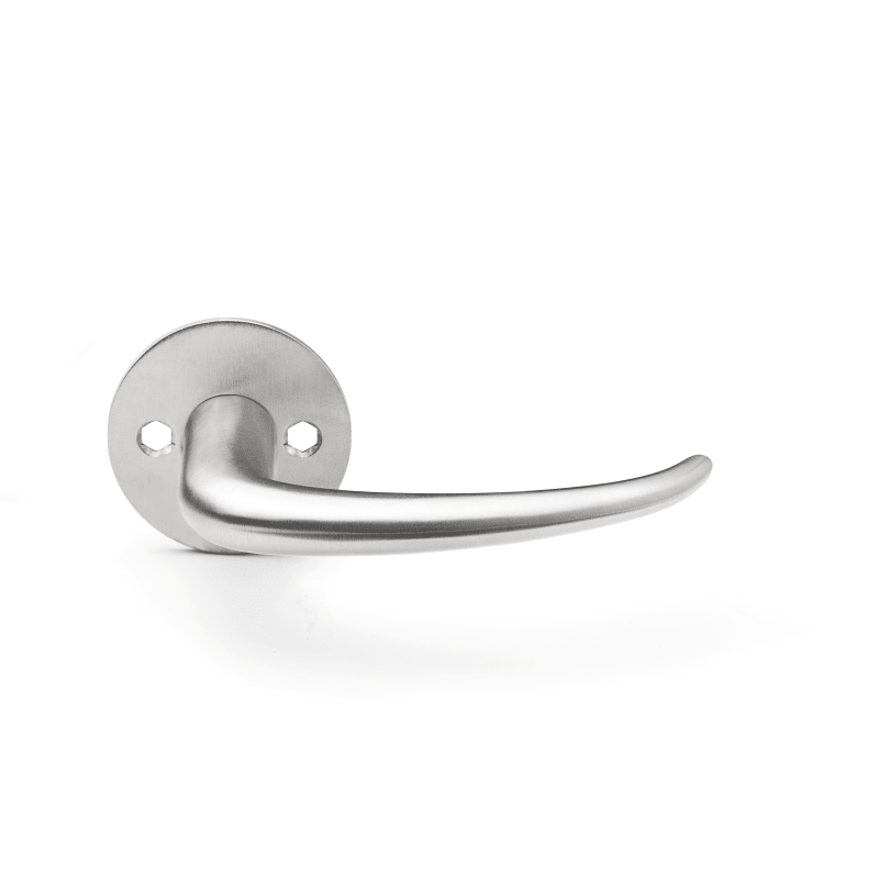 Classic collection, lever handle Coupé pair, 8x8mm, solid rose, cc 38mm, 33-59mm in satin finished AISI 304 stainless steel. Certified in accordance with EN 1906 to 47-B1140U. Fire tested in accordance with EN 1634. 20-year warranty.
