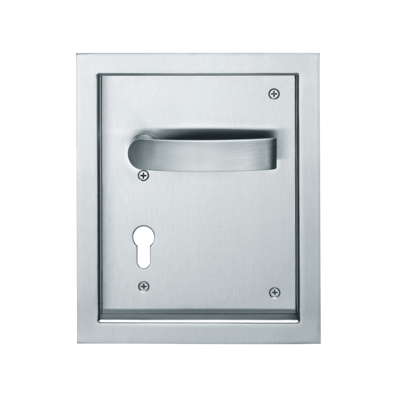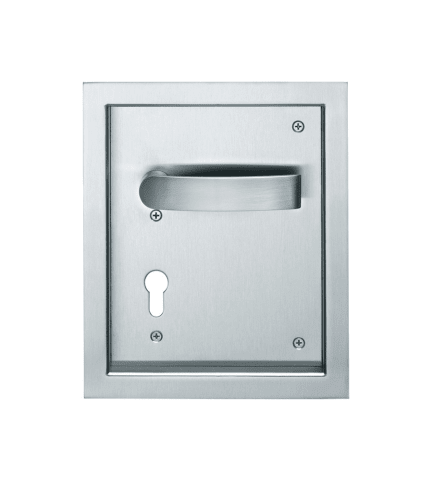 FSB, Feuerhemmend-Turnhallenmuschel, Lochung: Profilzylinder gelocht, Entfernung: 72 mm, Vierkant: 9 mm, DIN-Richtung: DIN Rechts, Modellnummer: 77 7949, Form: eckig, Material: Edelstahl, Farbton: ede