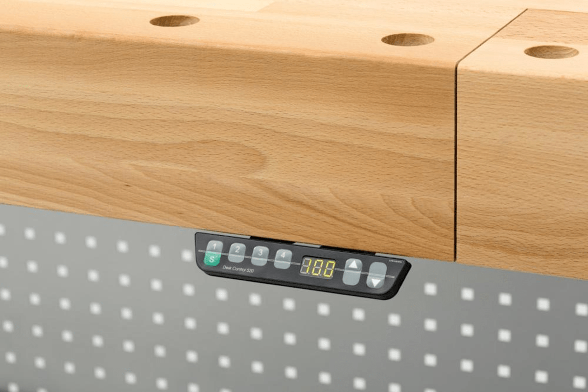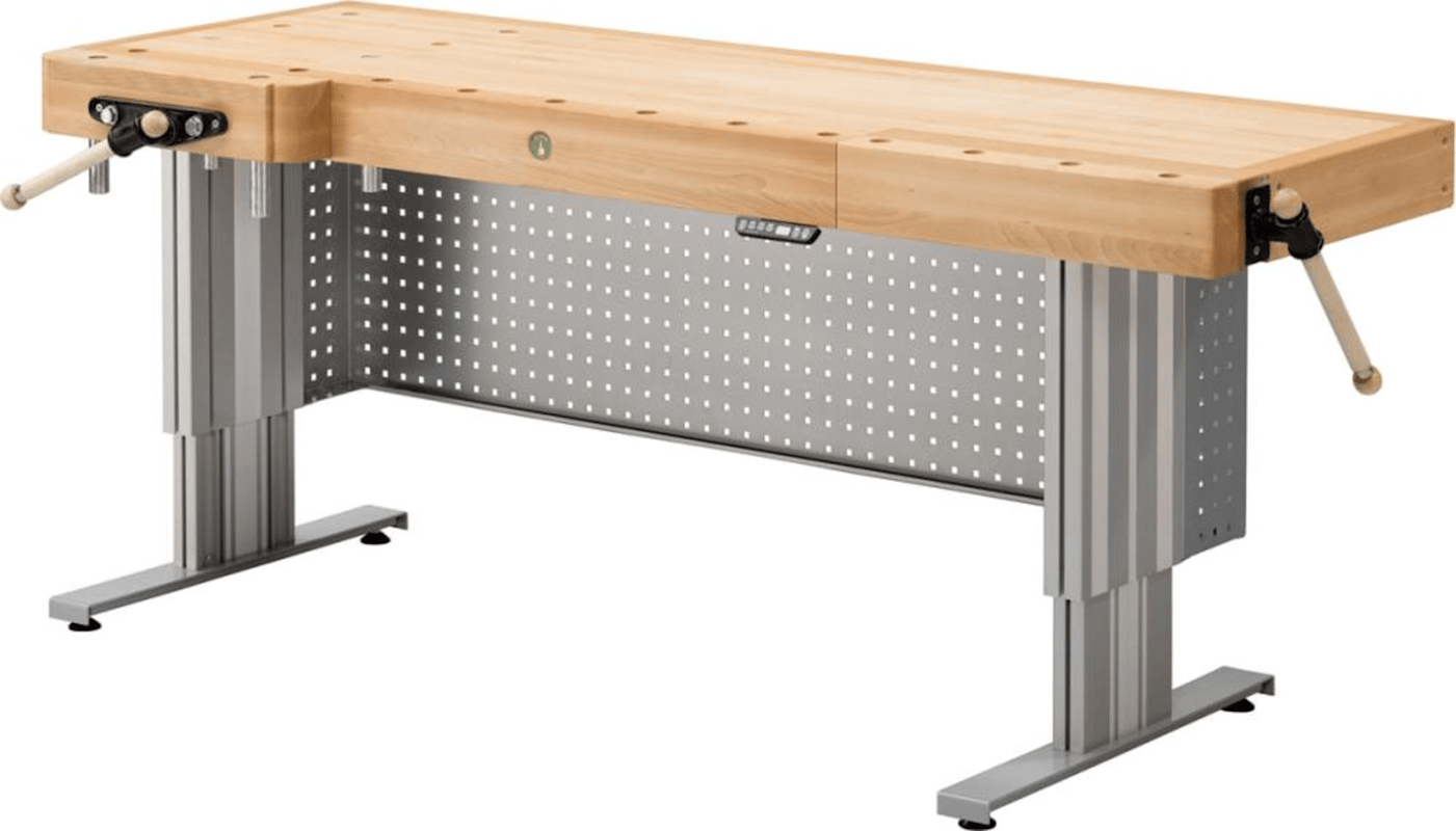 Schreinerhobelbank 4-200 eHv – elektrische höhenverstellbar• Bedienbar über kleines Bedienpanel mit 4 fix einprogrammierbaren Höhen • Höhenverstellung: stufenlos auf Knopfdruck durch elektromotorisch
