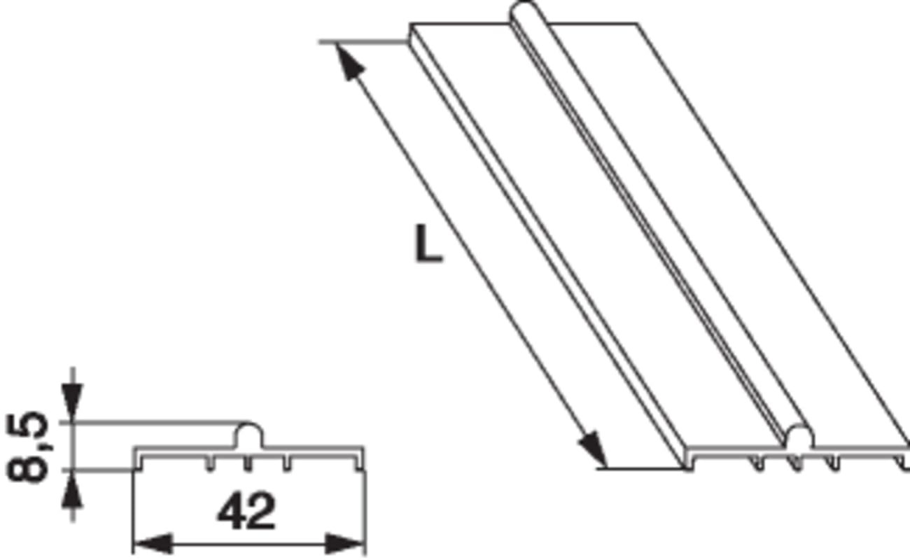 Bodenlaufschiene HS in Alu mit Laufschiene flach B=42mm H=4mm L=3.500mm silber F1