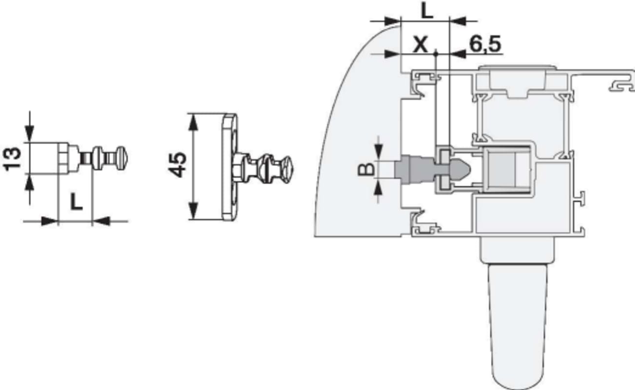 Verriegelungsbolzen HS PVC/Alu mit Spaltlüftung Breite=13 Höhe=15 gesamt Höhe=29,5 silber