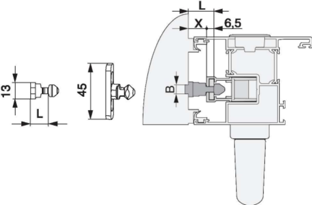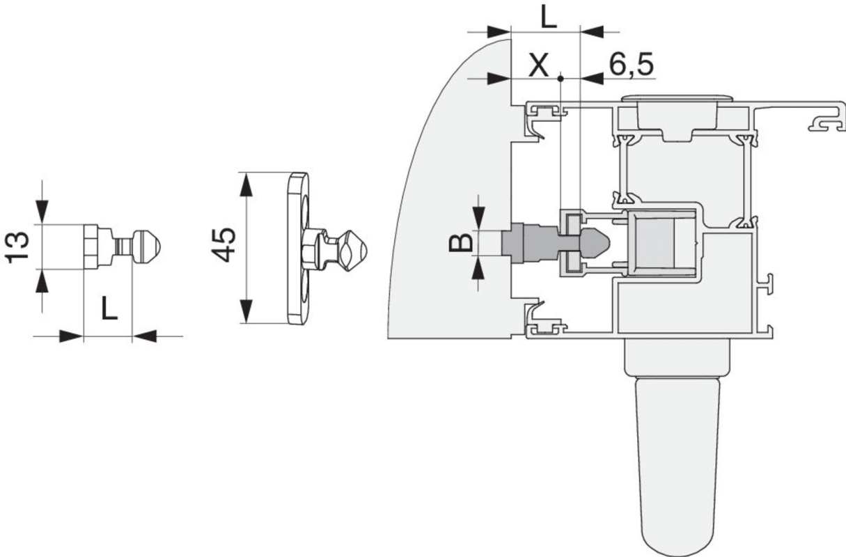 Verriegelungsbolzen HS PVC/Alu Breite=13 Höhe=15 gesamt Höhe=25,5 silber
