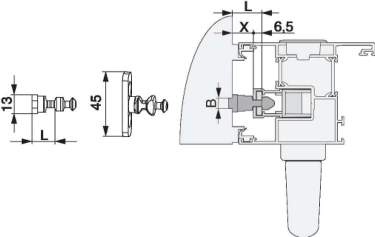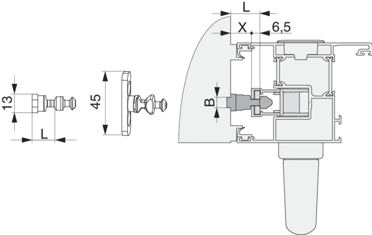 Verriegelungsbolzen HS PVC/Alu mit Spaltlüftung Breite=13 Höhe=16 gesamt Höhe=30,5 silber